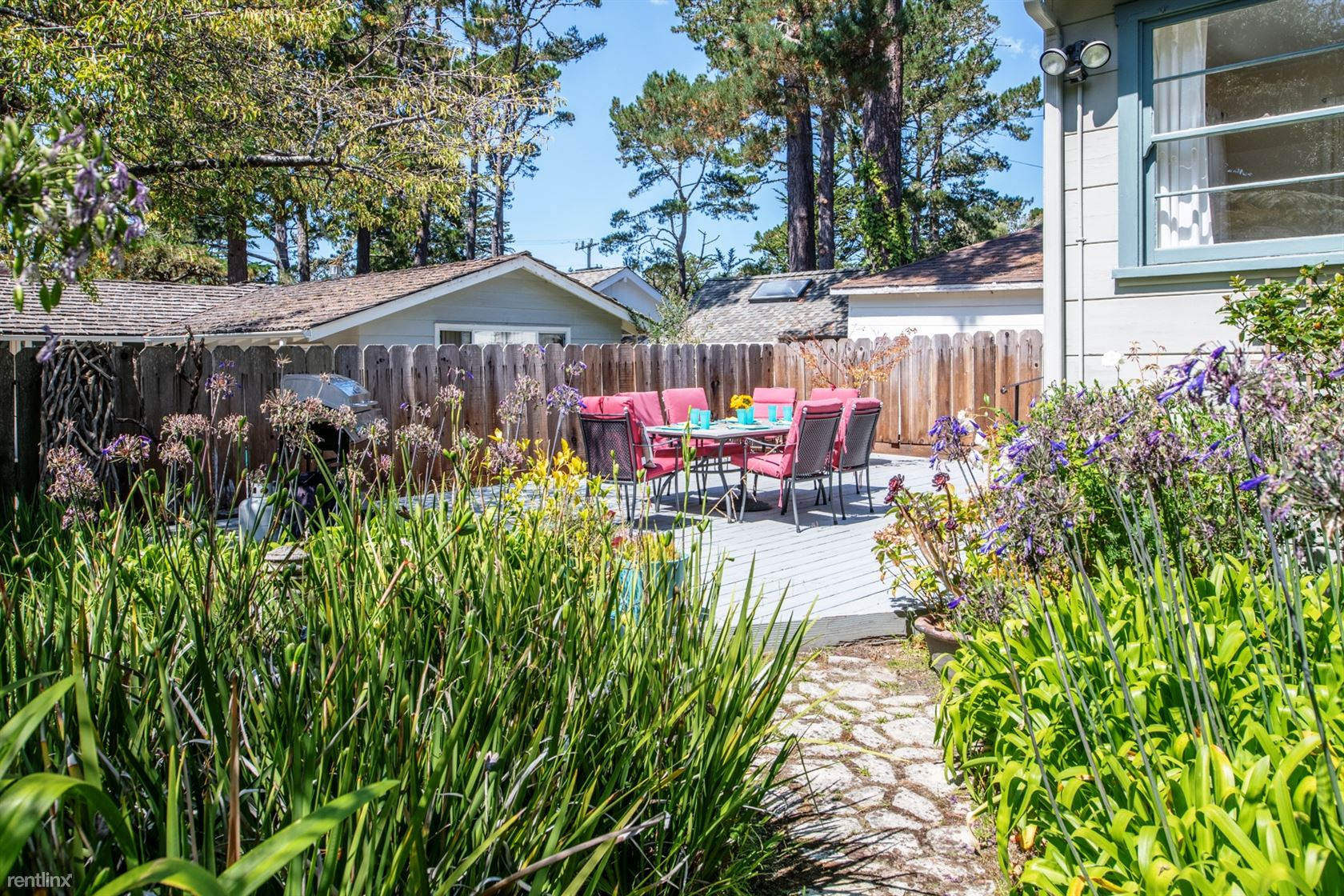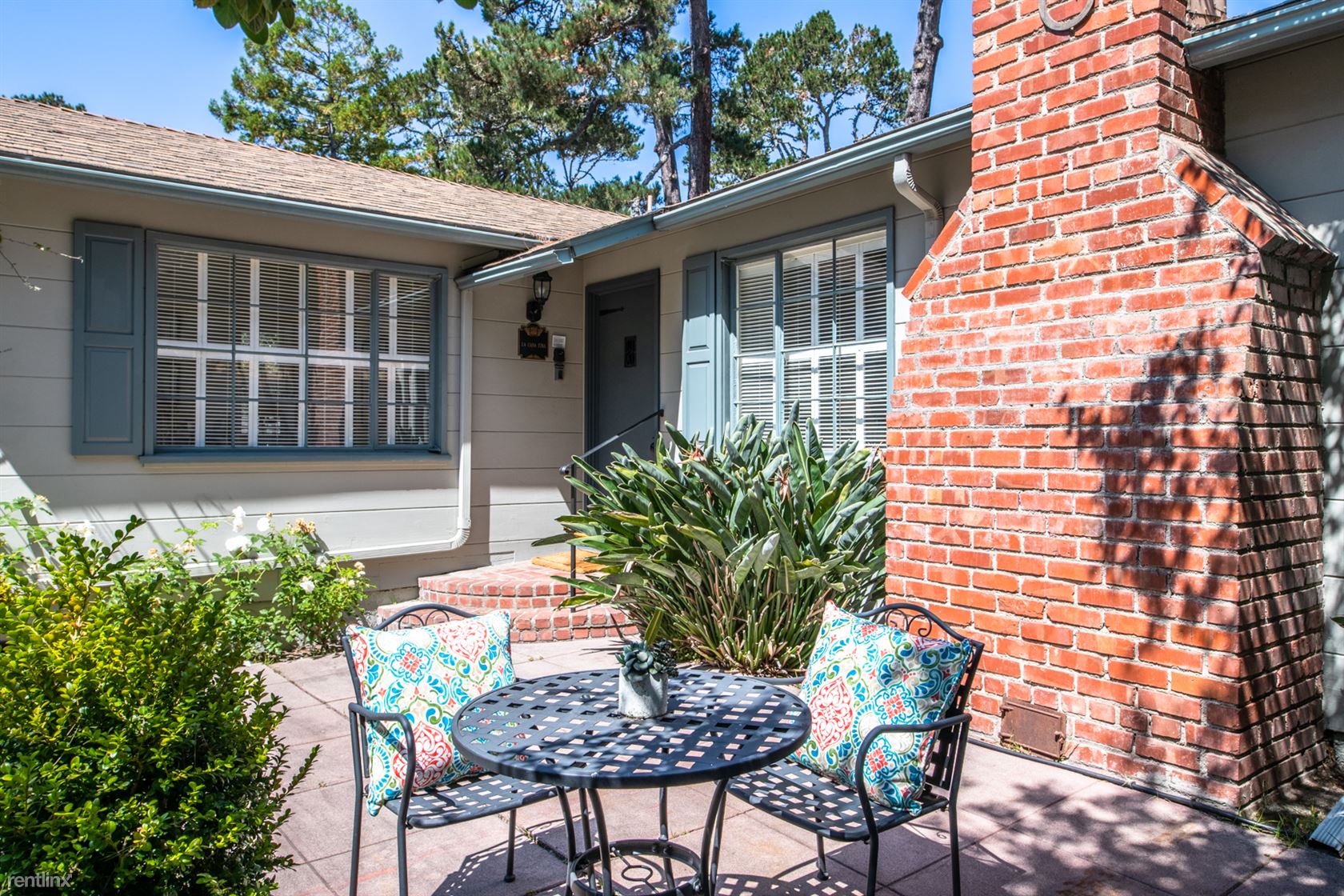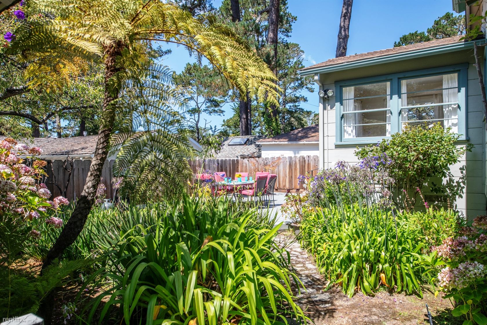 ***Please Do Not Disturb Tenants or Go Onto The Property Without the Listing Agent*** ***Monthly Rates vary and are based on number of guests, season, special events and holidays (ask about our seasonal and last minute specials and reduced long term rates).*** Walking distance to downtown Carmel in a sunny, quiet neighborhood. Pet Friendly! Living room features a wood-burning fireplace and a flat screen HDTV. Separate dining room - with built-in cabinetry, view of hydrangeas and an orange tree - can seat six people. Fully equipped kitchen has cabinetry painted in a deep ocean blue, tile floor and self-cleaning gas stove. Separate laundry room off the kitchen. Master bedroom has a king-sized bed, built-in cabinets and closets. Master bathroom has tumbled-marble tile, a large step in shower with bench seat and is equipped with sturdy hand-rails. Second bedroom has two twin beds (or king with Memory Foam topper). Accessed via the second bedroom is a sun room with day bed; can sleep one child or two children. A bathroom off the hallway has a tub and separate shower, also equipped with hand rails. Spacious deck has dining for six and a gas grill. Two cars can be parked in the driveway; additional street parking is available. (RLNE2457339)