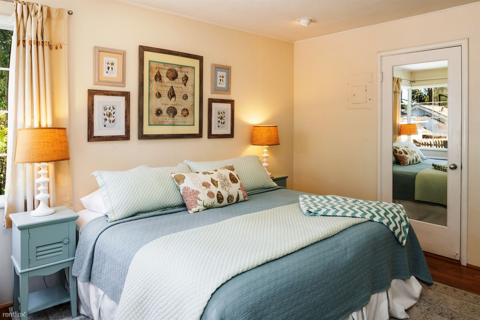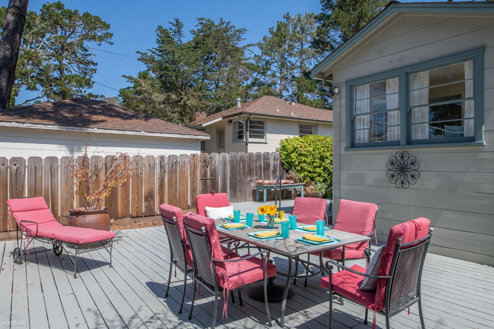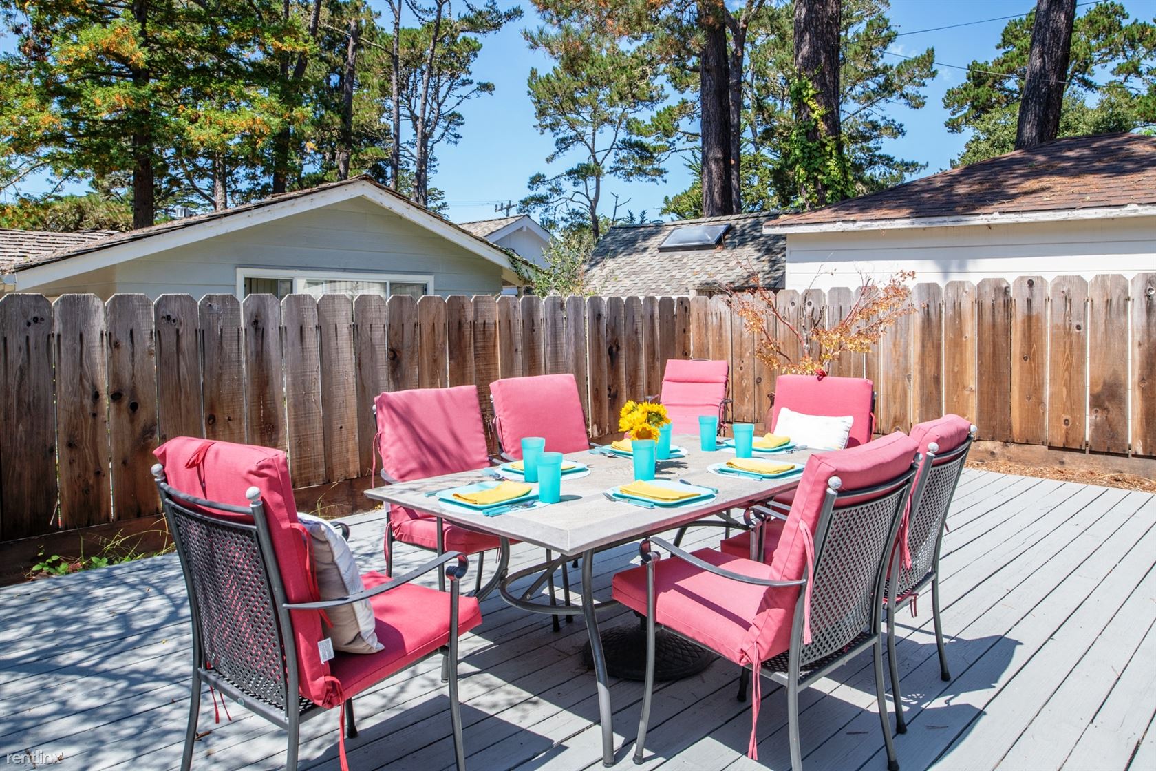 ***Please Do Not Disturb Tenants or Go Onto The Property Without the Listing Agent*** ***Monthly Rates vary and are based on number of guests, season, special events and holidays (ask about our seasonal and last minute specials and reduced long term rates).*** Walking distance to downtown Carmel in a sunny, quiet neighborhood. Pet Friendly! Living room features a wood-burning fireplace and a flat screen HDTV. Separate dining room - with built-in cabinetry, view of hydrangeas and an orange tree - can seat six people. Fully equipped kitchen has cabinetry painted in a deep ocean blue, tile floor and self-cleaning gas stove. Separate laundry room off the kitchen. Master bedroom has a king-sized bed, built-in cabinets and closets. Master bathroom has tumbled-marble tile, a large step in shower with bench seat and is equipped with sturdy hand-rails. Second bedroom has two twin beds (or king with Memory Foam topper). Accessed via the second bedroom is a sun room with day bed; can sleep one child or two children. A bathroom off the hallway has a tub and separate shower, also equipped with hand rails. Spacious deck has dining for six and a gas grill. Two cars can be parked in the driveway; additional street parking is available. (RLNE2457339)