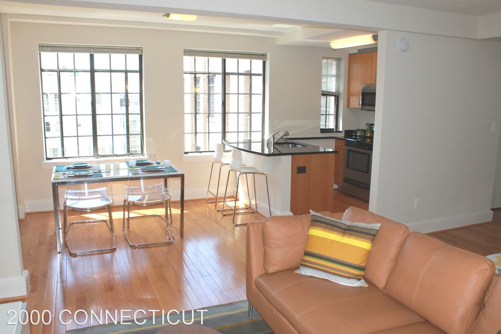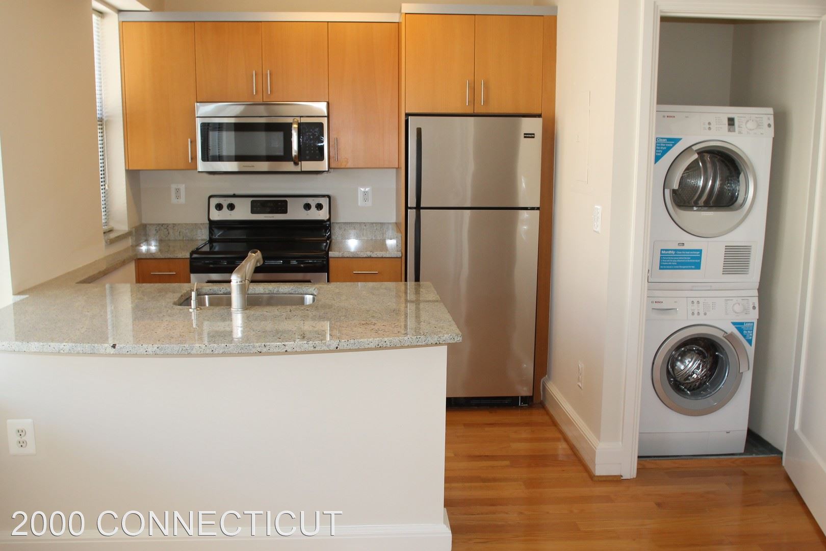 Open Saturday at 2000 Connecticut: Fantastic Southeast Facing One Bedroom w/ W/D in Unit! - Open Saturday from 10:00 am - 2:00 pm! This southeast-facing unit features tremendous natural light and a view over our gorgeous courtyard! Our residents love the open concept in this apartment with the kitchen island opening up directly to your dining area (or WFH space) and flowing nicely into the spacious living room. You will also the love the finishes throughout the apartment including real 3/4" thick hardwood floors, granite eat-in kitchen with stainless steel appliances, Bosch washer and dryer in unit, and full adjustable closet shelving. The building features front desk services including package handling and dry cleaning valet, a rooftop deck with panoramic views and a Weber gas grill for resident use, a 24-hour fitness center, free bike storage, and additional rental storage! Just a short walk to the Dupont Circle Metro stop on the red line, L1/L2, and 42/43 bus lines right outside your front door! Professionally managed by Keener Management. Converting to a smoke-free building. Sorry, no pets. EHO Keener Management will not refuse to rent to a person because they will provide the rental payment, in whole or in part, through a voucher for rental housing assistance provided by the District or federal government.